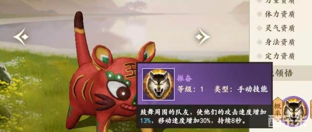 如果能够在打boss时候开启振奋,无论是对走位或者是集火输出都有着很好的优势,所以建议该等级阶段玩家在攻略副本时尽量要携带一只。除了振奋之外,还能领悟到其他技能效果,包括火灵和摄魂。摄魂也是较好用的自动攻击型技能,在攻击时有几率造成伤害,并且恢复自身血量,属于能够提高续航的类型。火灵则是减少受到的火伤害,这样在和火属性敌人战斗或者是门派PK时,防御上有优势。