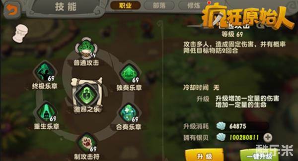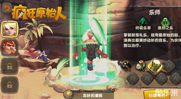 乐师在《疯狂原始人》中承担治疗的职责,乐师可以通过演奏优美的音乐使人感受鼓舞、忘记伤痛、也忘记烦恼。并且乐师如果能让自己的乐章按照一定顺序,行云流水般的演奏下来,则能达到更加的效果。