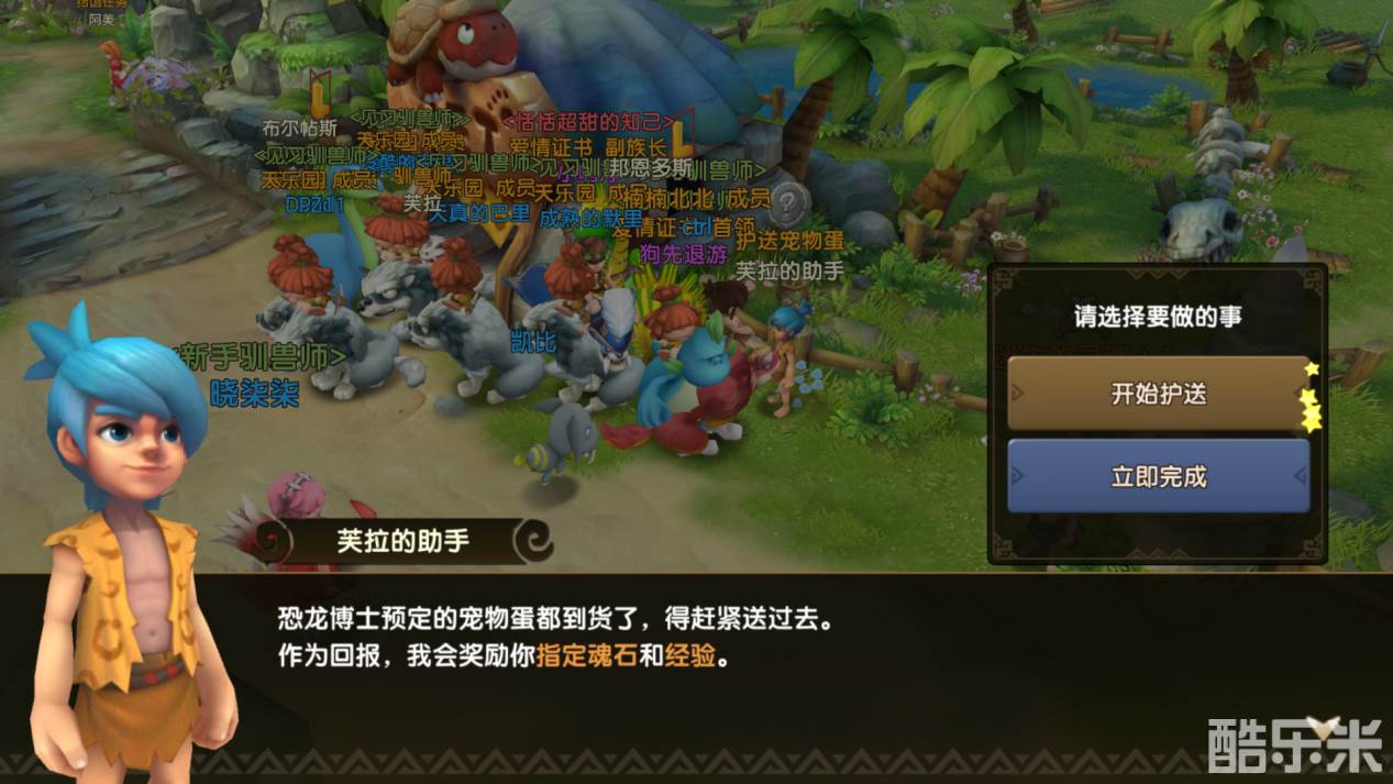 推荐理由:对于新手而言,在《新石器时代》如何获得宠物是所有驯兽师最关注的一个话题,而护送任务恰好就给驯兽师们提供了一个快速获取魂石的途径!魂石是可以召唤★3宠物或升星所需要的道具。该任务需要玩家帮助芙拉的助手,将宠物蛋运送给恐龙博士和他的助手,不过在运送的的途中有机率会遇到劫匪,驯兽师需要与劫匪战斗并打败他们,若战斗失败将会影响奖励!每天可护送三次,每周六可以获得双倍奖励!