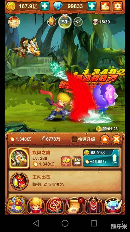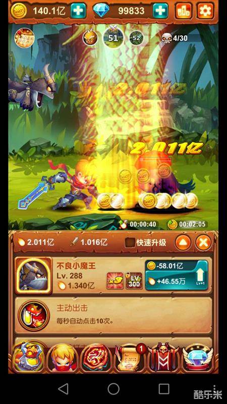 消灭怪物会获得金币。金币最终会转化为伤害输出。关卡越高,所得的金币也越多。包括离线挂机时的收益也越多。玩家可以无限停留在任意小怪关,不断获得金币。