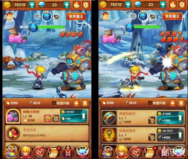 打怪赚取金币,用以购买和升级各种宝物。宝物为主角提供攻击力的成长.游戏内存在多达25个宝物,且会在后续版本更新中扩展数量。