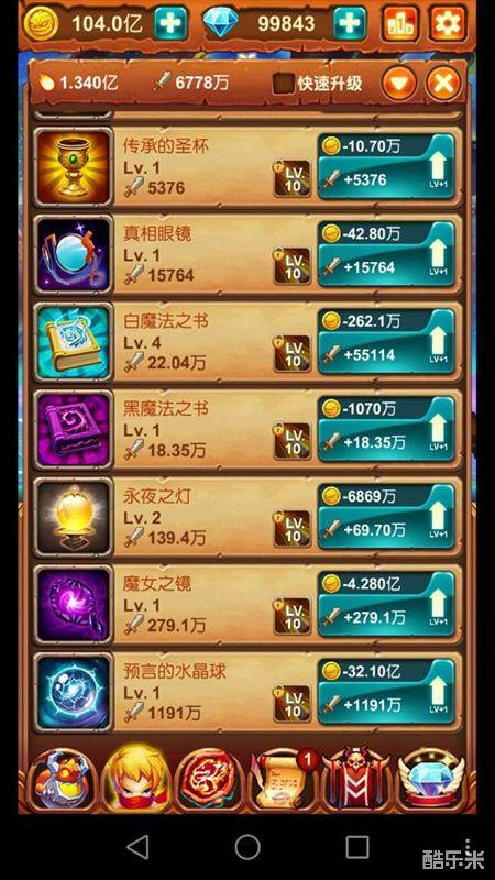 每个宝物都会有自己的专属被动技能,为整个战斗系统提供多种多样的永久攻击Buff。宝物的获得和升级所带来的攻击力成长是几何级数的。仅自身升级所带来的成长就可一次翻10倍。
