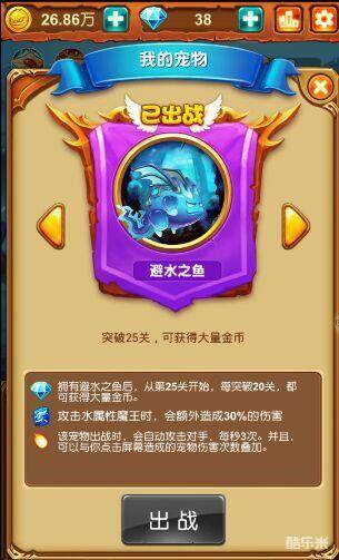 特有属性:拥有水晶之鱼后,从第25关开始,每突破20关,都可获得大量金币。