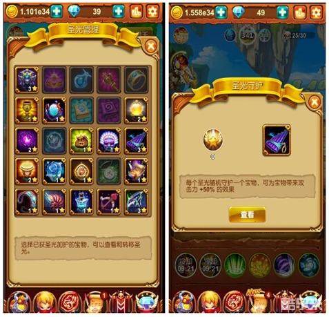 圣光系统是是依托于宝物系统而存在的高级功能。宝物每接受一次圣光守护可提升50%的攻击力,无次数限制的叠加设置,可使宝物的属性无限增长,通过转移将圣光从低级宝物转移到高级宝物,战力飙升轻松战魔王。
