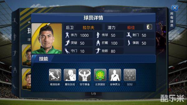 在球员图鉴中,所有球员将根据场上位置以及球员资质进行分类,玩家可查看所有球员的所属球队、属性、位置以及号码技能
