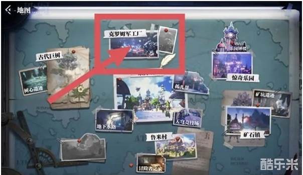 在世界地图中点击克罗姆军工厂,进入地图之后前往秘境!