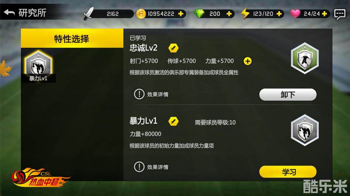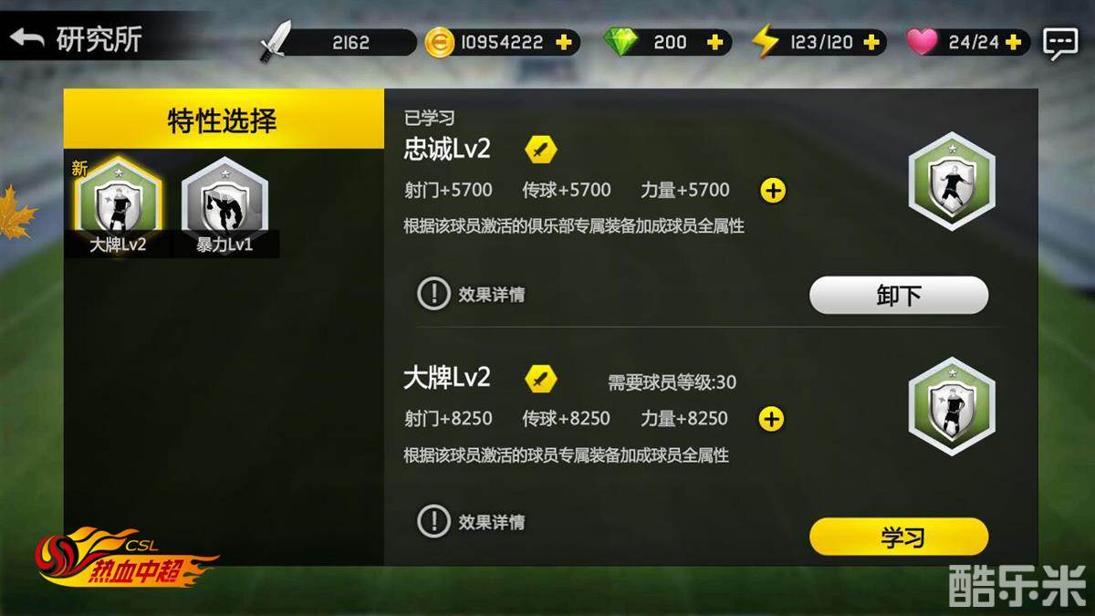 《热血中超》中的球员特性除了可穿戴和替换、增加球员属性外,还能合成和分解,如同品级的特性可自由进行合成,三个同品级特性可随机合成一个高一品级的特性,而特性可在将来开启的技能系统中通过技能书合成为技能!