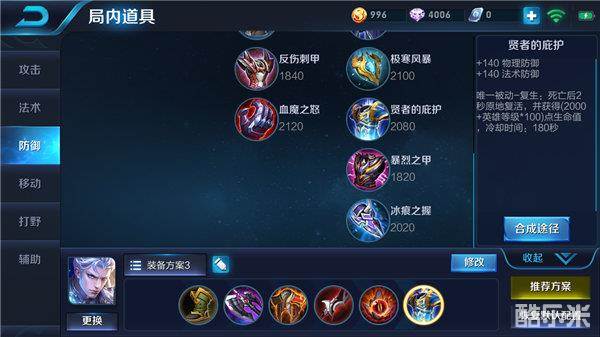 总结:这套出装可以说是铠极为强势的出装,能够让铠在任何情况下都拥有强悍的对抗能力,并且极大程度上加强了自身的输出以及生存能力。