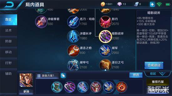 六神装:抵抗之靴、暗影战斧、冰痕之握、反伤刺甲、破军、不死鸟之眼