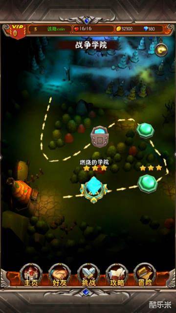 游戏操作:游戏开始后玩家可以进行阵型的布局,战斗的操控模式有手动和自动两种。手动模式下玩家只要布好阵型后点击前进或者攻击按钮就行了。游戏玩法:点击主界面的冒险按钮,就能进入闯关模式了。值得一提的是大地图以及关卡选择界面都是3D界面!