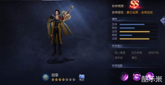 在竞技场战斗中,对面如果没有上阵类似“步城主”“半神雪鹰”等沉默硬控性前排单位。可以考虑让“剑皇”入阵前排一号位。反之,可以附带“嘲讽”“浮空”性伙伴入阵前排一号位。通关副本时,在面临追赶性质任务时,可尝试将剑皇放至一号位进行移动限制,降低敌方逃跑几率。