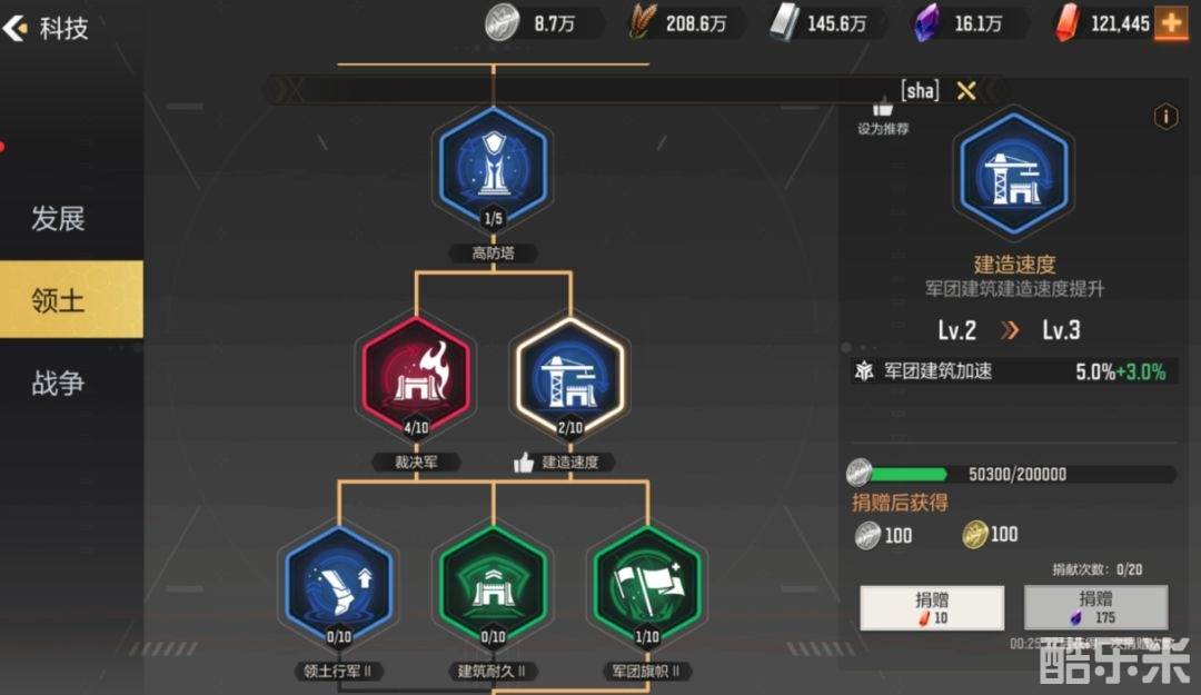 军团成员通过捐献资源或者原石都可以提升军团科技进度,进度满时军团长或军团执事可进行研发。捐献科技可以获得军团个人积分。只有军团成员齐心协力,军团才能茁壮成长。