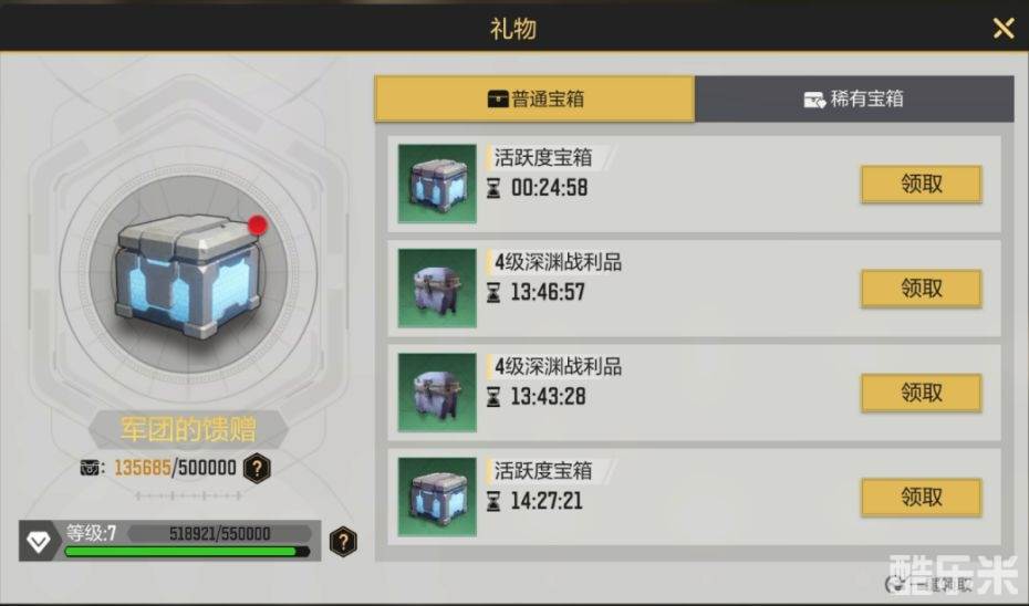 每个军团成员每天活跃达到一定阶段时,所有成员都会获得一个军团礼物。礼物点数用于提升军团礼物等级,钥匙点数用于开启军团的馈赠。军团礼物等级越高,军团的馈赠奖励越好。
