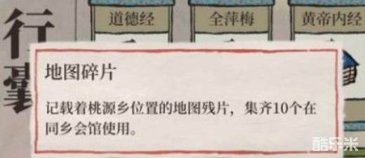 地图碎片是8月新活动,集齐10个地图碎片可以组队,在同乡会馆使用,开启建设桃花源活动。不过目前还没有开启,玩家可以期待一下。