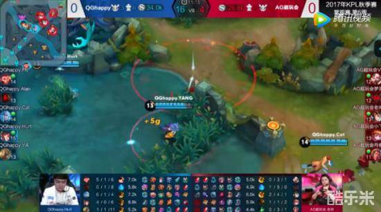 作为第六周最引人注目的一场比赛,QGhappy和AG超玩会两支战队的再度碰面让所有玩家和粉丝期待已久。而谁也没有料到,这场重量级的强强碰撞却被卫冕冠军生生打成了一边倒。QGhappy战队一边,三叉戟Cat、Hurt和Fly的组合首局合力砍下16-2-18,而Hurt首局砍下1W经济甚至高出对方张飞近乎一倍,12分钟后QGhappy就斩获首局比赛胜利。次局比赛,AG超玩会对QGhappy战队三叉戟同样没有找到更多的办法,老帅的射手体系也难以发挥威力,14分钟QGhappy战队再胜一局将一场大战速战速决。