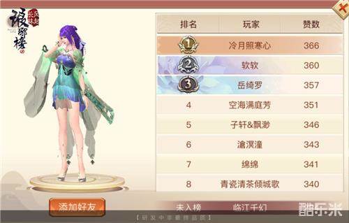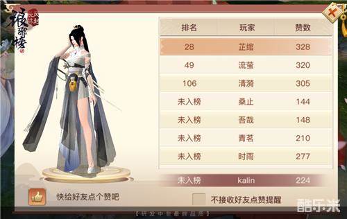 各位玩家可以在风华绝代的排行榜中看到获赞数量前20名的玩家角色形象,有心人可以通过添加好友来向他们请教形象搭配的秘诀。