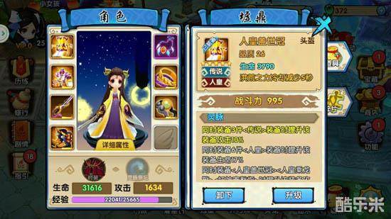 在游戏操作界面的下面,选择“墟鼎”,打开角色装备界面,可以看到装备的具体属性。