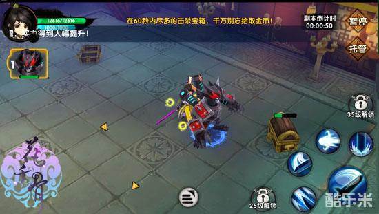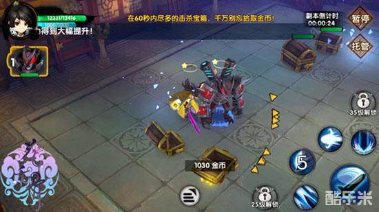 进入金库探宝副本大家可以看见副本中有许多的宝箱,控制好人物角色攻击宝箱,打爆箱子过后会爆出金币。金库探宝副本只有60秒的副本时间。因此,大家要在60秒的时间内,控制好人物角色尽可能打爆更多的箱子,进而拾取更多的金币。