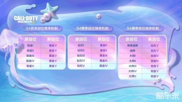 在S4赛季开始后,战士们的段位也会发生变化,瘦普将现有段位的继承机制整理成了图片,战士们可以对照查看哦~