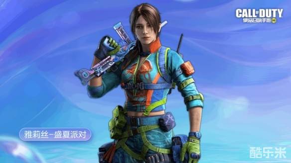 雅莉丝-盛夏派对身着蓝色紧身作战服,上衣印有橙色水母,看起来正在度假。但她时刻用锐利的眼神观察者四周,证明这一切并不简单。