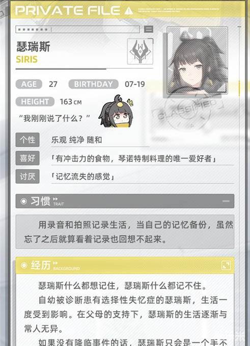 尘白禁区瑟瑞斯强度介绍,新角色背景一览。上天似乎并不公平,所以才让瑟瑞斯这个单纯善良的女孩患上失忆症。