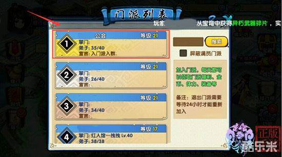 等级越高的门派,在门派列表中的排名将越靠前,玩家在选择门派的时候,会优先考虑选择排名靠前的门派。因此,门派掌门们要想办法将自己门派的等级提升,争取排名靠前,这样门派才能得到更好的发展。