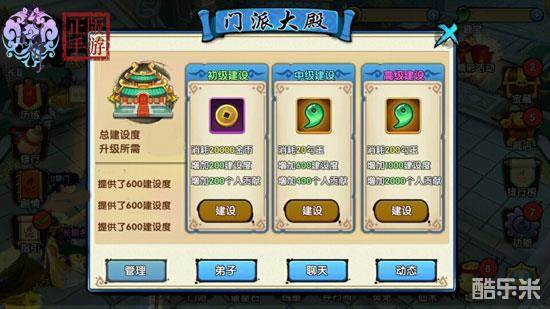 人和是门派发展中最重要的一个因素。小编所理解的人和就是人与人之间的团结和睦,门派需要广大弟子成员齐心协力一起建设才能发展得更好。“门派建设度”是门派升级发展的关键,建设度达到一定要求的门派才能升级。作为门派掌门,一个人的力量是有限的,要号召广大门派弟子一起建设门派,这样门派建设度才能更快的增长,门派才能取得更好的发展。门派等级越高,排名越高,名气越高,门派的发展就将越发无可限量!