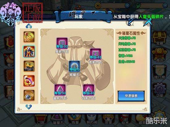 前期璀星石星槽上不要留有空余,有了璀星石就装备上。紫色品质的璀星石是平民玩家的首选,在前期副本中紫色品质的璀星石也较容易获得。在仙剑大会商店中可以用仙剑大会名望兑换红色品质的璀星石。