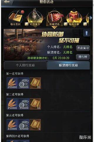 主公们在与朝廷驻军的演练过程中不会发生实际的伤亡,这个不用担心的。但是主城兵力越雄厚才能抵御更多的朝廷驻军。而且,整个联盟要齐心协力以盟利益为先,让联盟拿到总积分靠前的前提下,再考虑将盟友送上前十的宝座,保证人人有奖励可拿!这个时候一般都有一些诀窍,有同盟的联盟,可以调动同盟的盟友来进行援防,援防对象以主城校场兵力高,集结高的为主,助他们拿到更多积分。没有同盟的联盟,也同样,盟友出动主力部队援防盟内高兵力高集结的主要核心人员,保证整体积分更高!