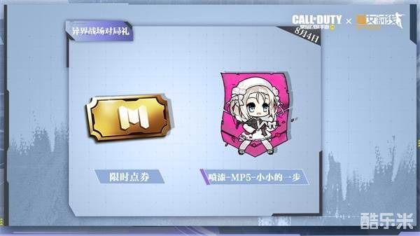 联动期间,使命战场也需要战士们化解危机。8月4日(下周五),异界战场对局礼登场,战士们参与使命战场模式、收集坍塌液皆可获得限时点券,在使命战场的医院区域消灭1名敌人即可获得喷漆-MP5-小小的一步。