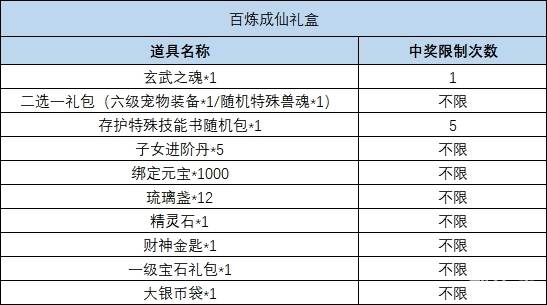 百炼成仙礼盒:8月8日5点~8月11日5点