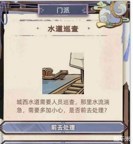 水道巡查按钮在门派人物下边。