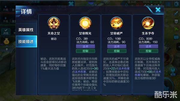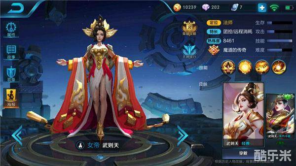 武则天是一位强势的法师英雄,操作难度不高,相比于其他法师容错率也要高一些,如果你拥有稀有英雄武则天,一定要赶紧练一练,相信会成为你最强的中路上分英雄。