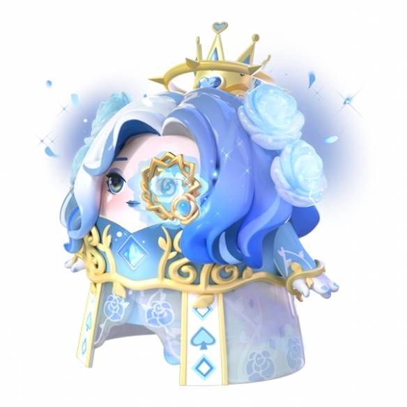 自花蕾绽放间跃然而出,童话梦境的“蔷薇白皇后”挥舞权杖,寂寥的荒野便转瞬繁花遍布。淡蓝轻纱裙摆飘逸灵动,浅色蔷薇印花灼灼蔓生,金色纹饰如同花藤缠绕,高雅的盛装只为迎接远方的来客。蓝白挑染的长发间点缀着水晶蔷薇,剔透晶莹如同易碎的梦。金色王冠象征着绝对的皇权,蔷薇轮盘眼镜似乎能看透来者的心声,但圣洁的白皇后却从不迷失权利的欲海,反而在待客时更加温柔有礼,“你愿意为我献上,清晨里的第一束白色玫瑰吗?”