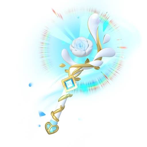 纯白色的杖身蔓延生长金色花藤,一朵圣洁的白玫瑰绽放在杖头,散放着蓝色的璀璨光芒。虽然蛋仔无法像白皇后一样释放出它强大的魔力,但这柄【权力权杖】将成为双方友谊的见证。