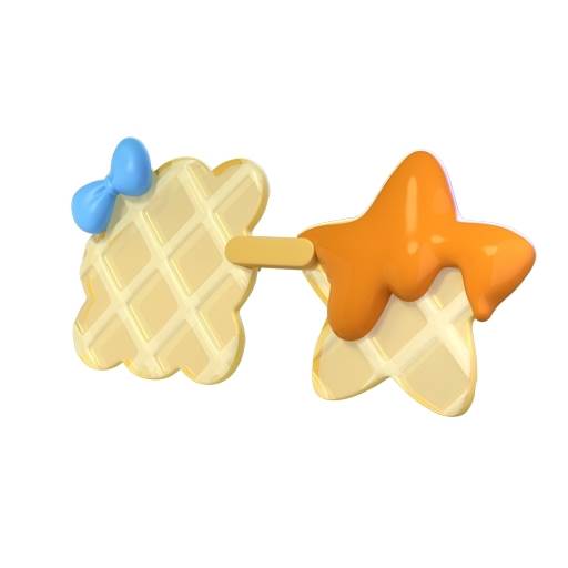 方块形与星星形,两块香甜酥脆的曲奇,一边戴上蓝色蝴蝶结糖饰,一边淋上甜蜜的巧克力酱,浓郁的香气让“饼干眼镜”成为茶话会上最受欢迎的甜点和饰品。