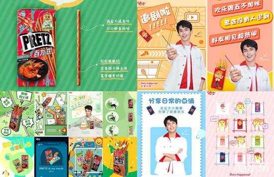 联动背景色应该是产品宣传图里多次出现的颜色中选取,然后选出更靠近小偶像应援色的颜色,比如:泉的绿色背景是因为虾味的所有宣传图主要就是以绿色为主,其他黄绿、黄色出现频率极低,栗子手拿的产品代表色就是浅蓝,leo的经典款百奇宣传背景图就是有红有橙,所以优先选了和leo应援一致的橙色。