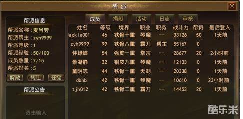 7、开启帮派禁地:由帮主(副帮主)消耗当前帮派经验开启,开启后,帮派所有成员都可进入。击杀禁地中的boss后,可获得帮贡奖励。