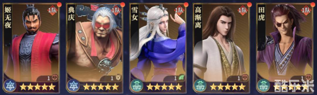 高渐离+雪女+钟离眛+典庆+逍遥子