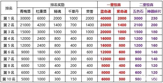 活动期间累计充值金币达到10000金币,可以额外领取一重惊喜奖励(蓝命魂,紫命魂);