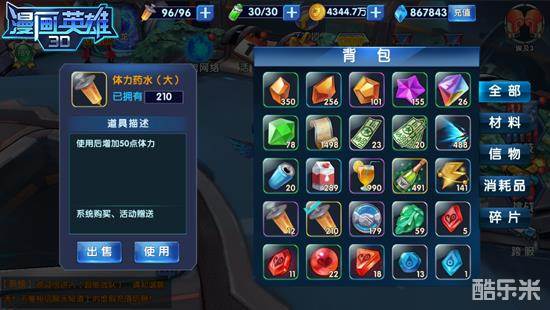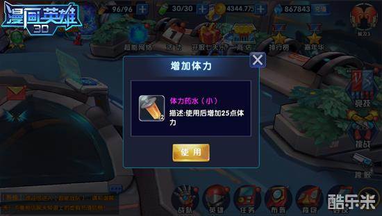 在《漫画英雄3D》的一些系统和活动之中,玩家还能够获得体力药水。不同质量的药水所提供的体力也不一样。玩家们从背包中直接点击药水使用,就能够直接增加自己的体力值。