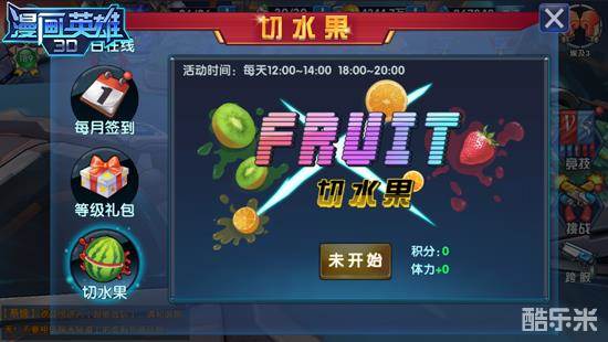 每天的中午12点至14点、晚间18点至20点玩家还能够通过切水果的玩法来获取体力。这个玩法考验的是玩家的手速,能够在规定的时间内将水果完全切完还能够获得额外的体力奖励。