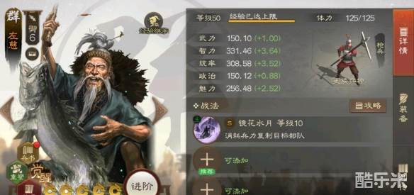 左慈这个武将本身除了智力稍微能看,其他的属性都是极差的。至于适性在仙人加成下,变为全A,只能说中规中矩,加成之后也一样只有智力能看,尤其统率低得可怕。但瑕不掩瑜,这个武将的自带战法相当霸道,完全撑起了这个脆皮身板的武将。