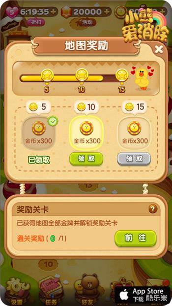 《小熊爱消除》作为一款休闲游戏,在丰富玩家闲暇时间的同时,也为各类玩家带去超乎想象的乐趣。《小熊爱消除》的地图结算简约却极富挑战,让成就控、完美控、金币控等各种玩家都有了自己的追求,在畅玩游戏的同时,有了更直观的目标去挑战。在新版本的《小熊爱消除》游戏中,每张地图都有着精美的地图结算,达到指定数量的金牌即会得到相对应的丰厚奖励。全新的结算机制,更丰厚的游戏奖励,让玩家有了全新的动力去挑战每个关卡,从而在游戏中收获更多乐趣。