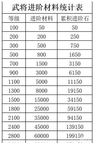 武将突破进阶石需求