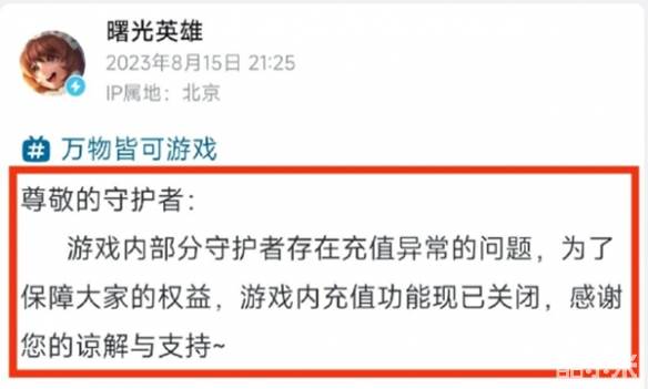 其次就是积极解决问题,而不是把反应问题的玩家解决了,服务器出问题玩家反馈,那就立马修,修了不行那就再买,目前小曙现在已经有二区了。为了怕玩家冲动消费还贴心的直接关闭了充值渠道,这事儿王者可不会干。所以到现在就算你想给曙光氪金都不行,虽然厂子小但是做的事儿是真的有魄力。