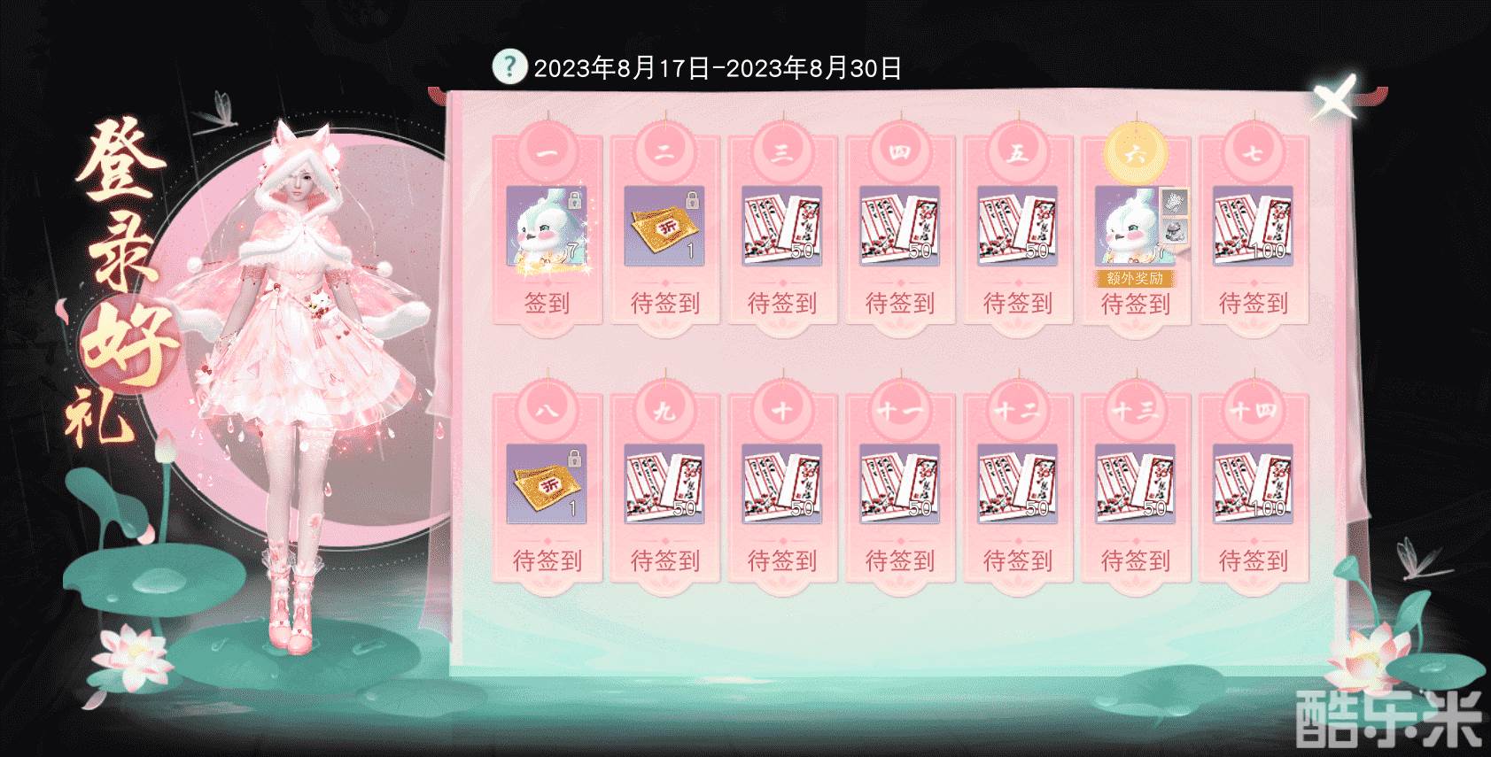 8月17日-8月30日期间上线登录,即可获得小喜鹊奖励,达到指定条件及登录天数后,还能额外领取技能书残页、四级宝石袋奖励!