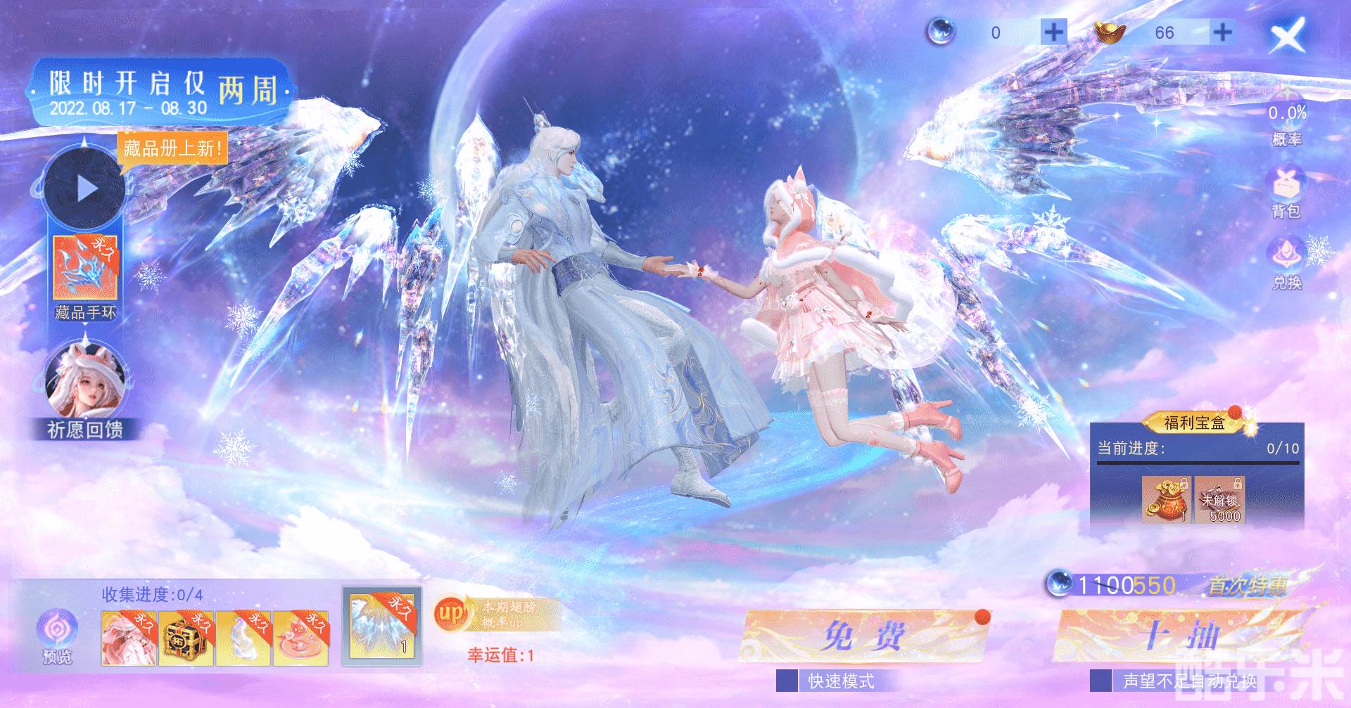 七夕限定祈愿·乞巧占星活动开启,8月17日-8月30日参与乞巧占星活动,有机会获得暖絮浮岚时装、凌扶摇·泠骨羽翼、幕垂星河藏品手环等珍稀外观,活动期间每天都可以免费抽取一次,达到指定进度还可开启福利宝盒获得桃花债肩饰、小小猞猁背饰等祈愿返利~