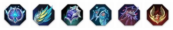 出装一:霜燃+守护之翼+正义壁垒+崇高信念+凤翼王冠+神圣救赎