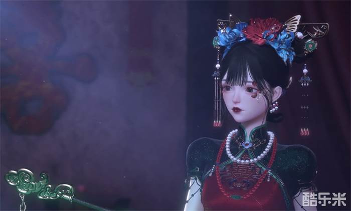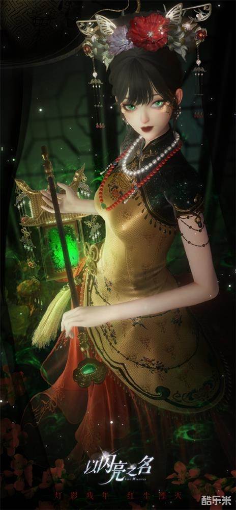 同样的女娃娃,穿上这套痴梦无诉时装后,眼前的大红喜蜡瞬间燃烧殆尽,喜堂上一切都如镜花水月化成空。绿色的幽幽灯光映照下,明媚张扬与幽暗神秘浑然天成。